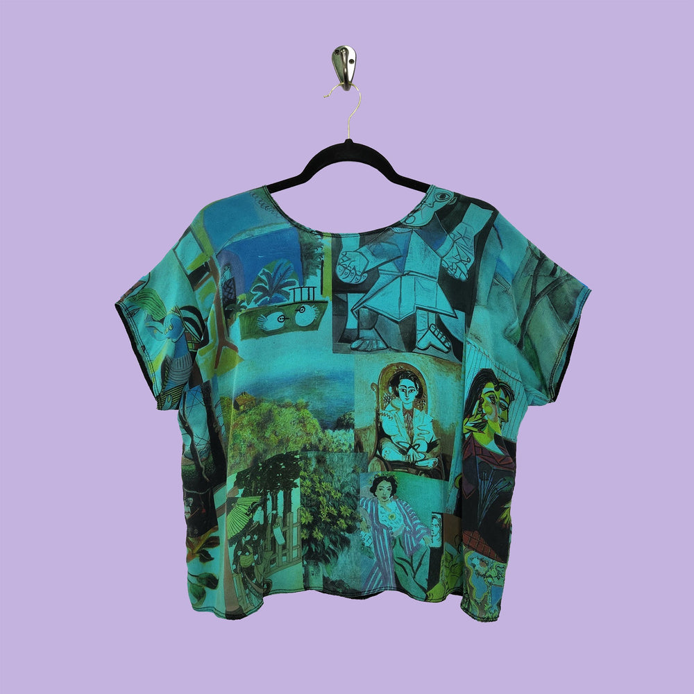 This Intuition Turquoise printed silk cap sleeved shell is a wardrobe essential! It is styled with a jewel neck and cut in a straight silhouette. The length is to the hip and shorter than our tank. The look is perfect for standalone chic or layered under your favorite jacket.